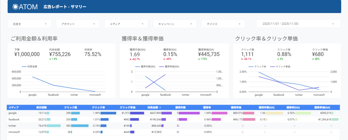 GA4対応Looker StudioテンプレートはATOMをご契約中のお客様はどなたでも無料でお使いいただけます。